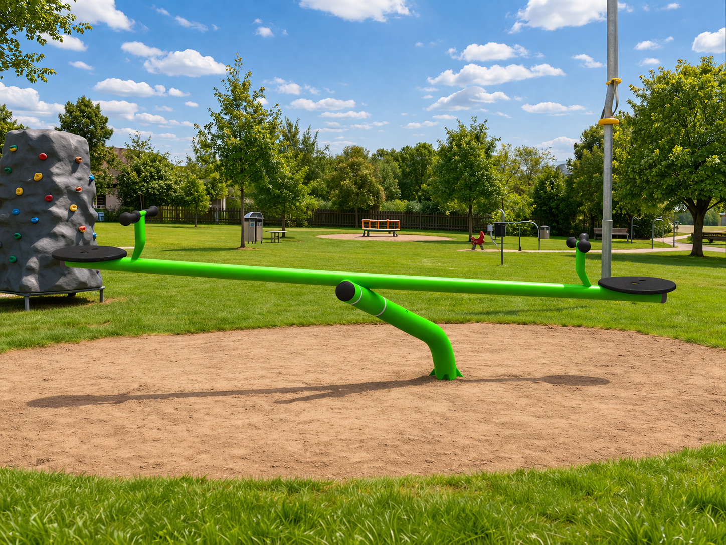 - Huśtawka posiada konstrukcję, która umożliwia wykonywanie ruchów na boki przy jednoczesnym ruchu góra-dół,